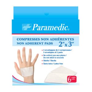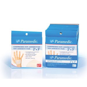 The non-adhesive compresses are very useful to cover a wound which is bleeding or exuding as they don’t stick to the wound. This makes changing the compress easier as the healing scab is being preserved.