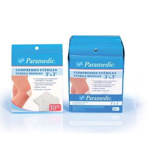 Paramedic’s sterile compresses are small squares of gauze with four folds, made out of rayon. The sterile compresses are used to disinfect or dress a wound. They can be applied on top of a cream or directly on the wound, in order to absorb the discharge and to protect the wound from contamination.